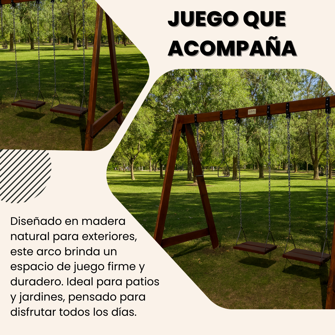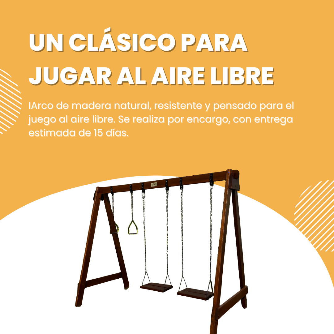 Este arco combina la calidez de la madera natural con la seguridad y resistencia necesarias para acompañar momentos de juego y diversión.