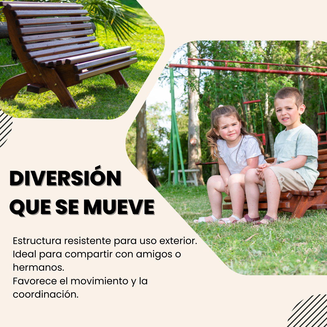 Dimensiones Pensadas para los Niños: Con un largo de asiento de 0,70 metros, un ancho de 0,40 metros y un alto de respaldo de 0,38 metros, este banco es el tamaño perfecto para que los niños disfruten de su propio espacio al aire libre.
