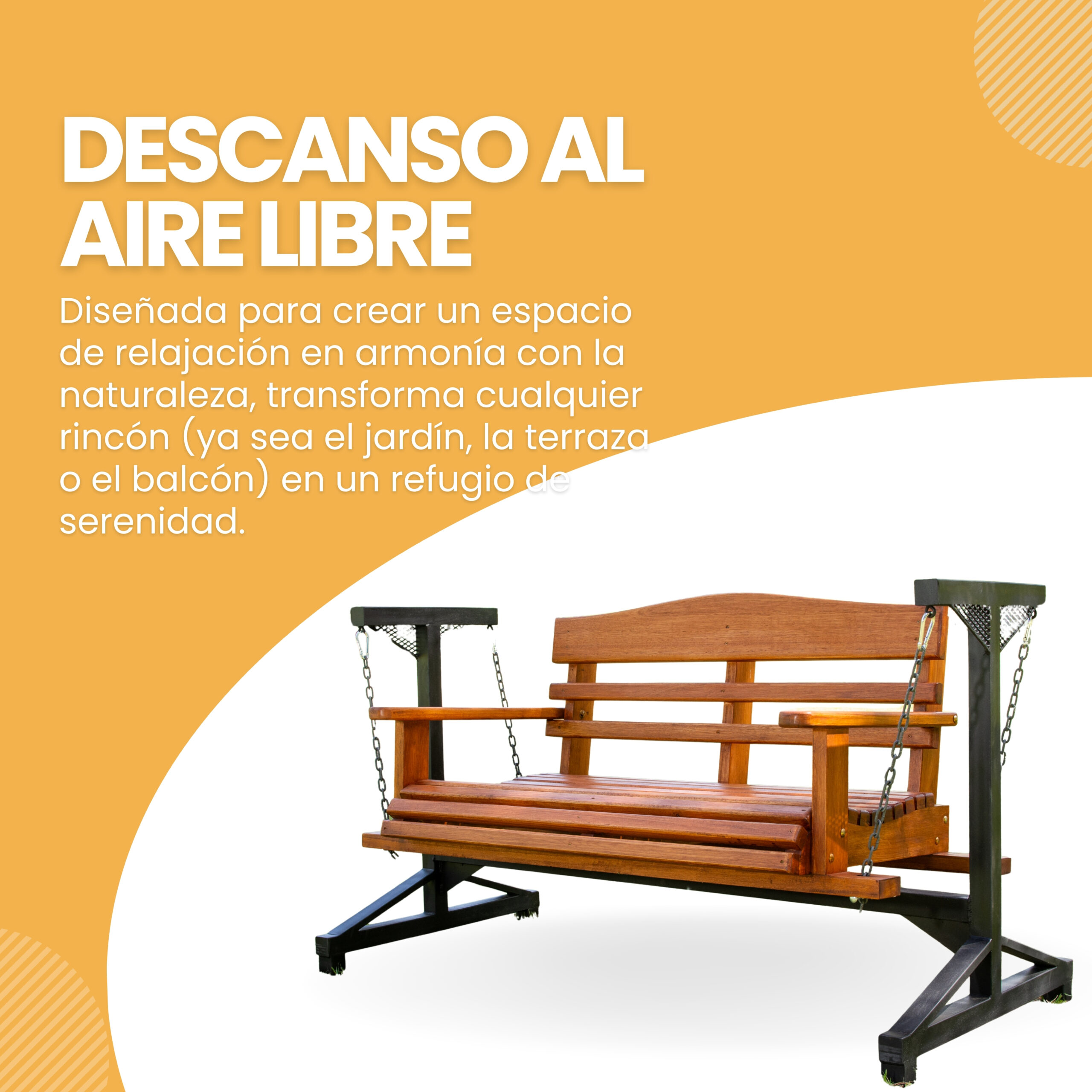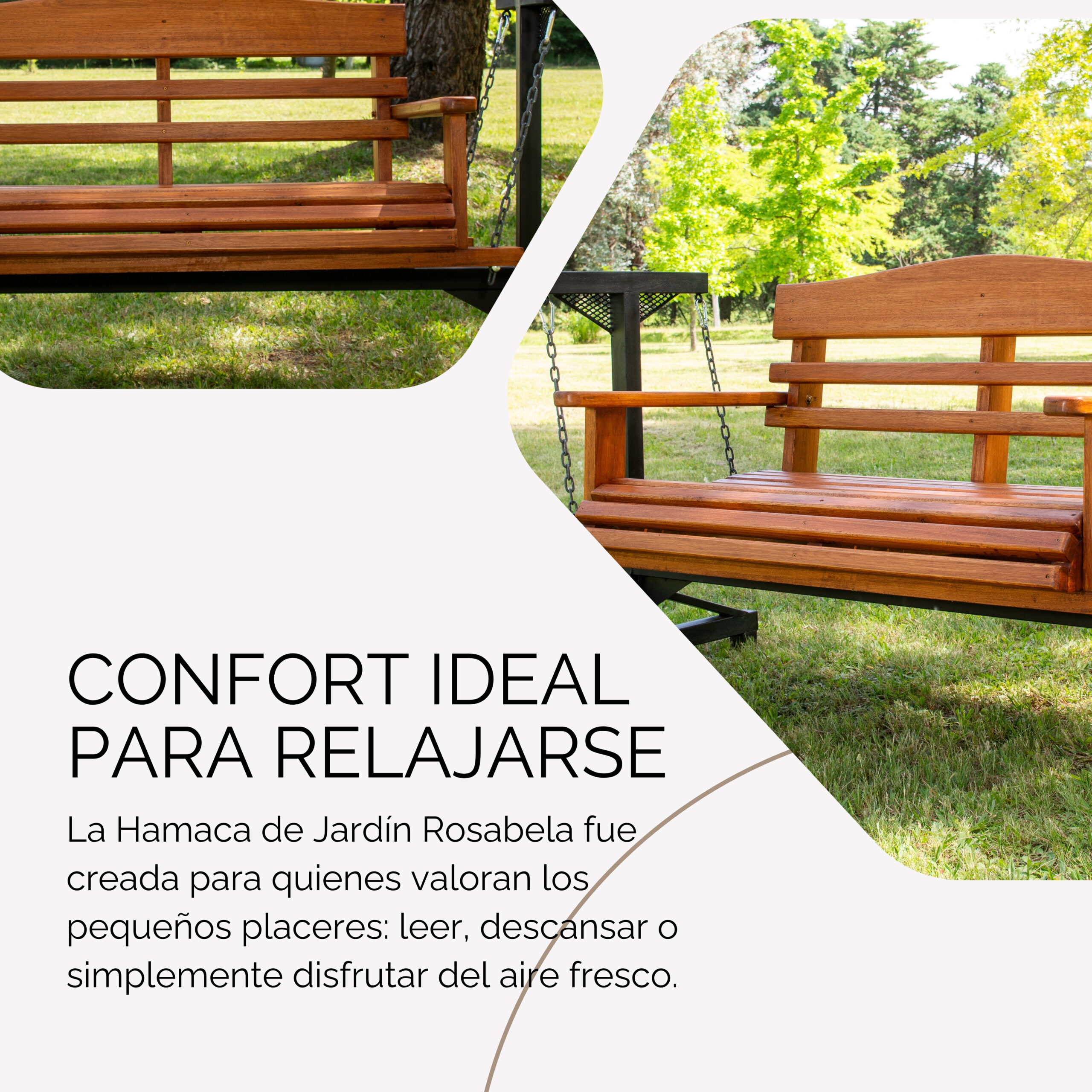 Versatilidad y Estilo: Su diseño se adapta perfectamente a jardines, terrazas o balcones, convirtiéndolos en espacios de descanso únicos.