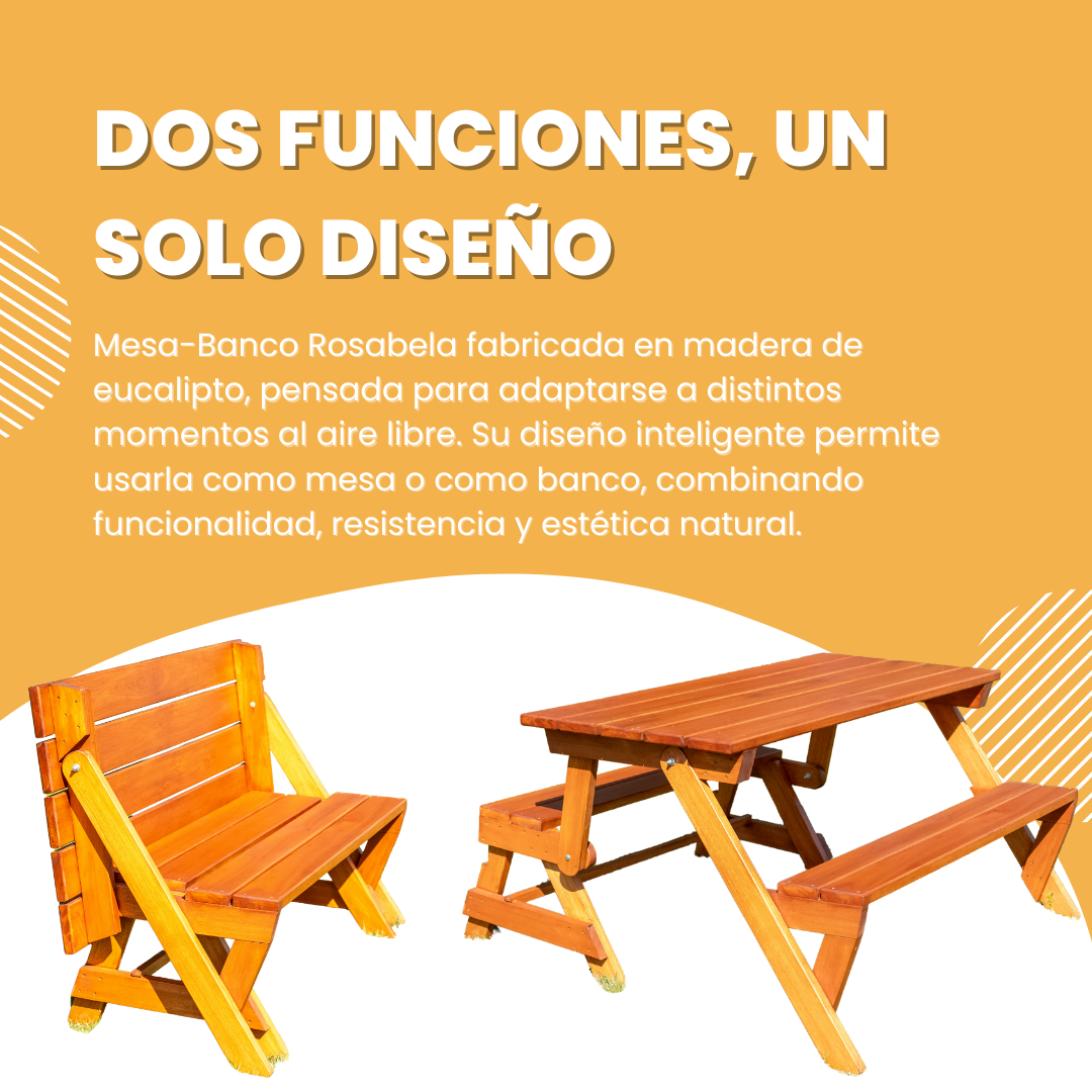 Rosabela: Innovación y Versatilidad en Tu Jardín con Nuestra Mesa-Banco de Eucalipto