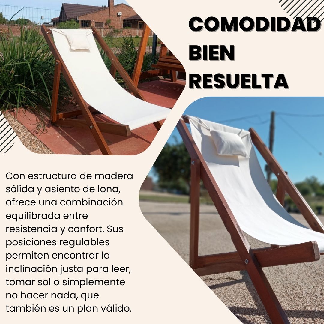 Con tres posiciones ajustables, es posible encontrar la inclinación perfecta para relajarse al sol, leer un libro o simplemente descansar.